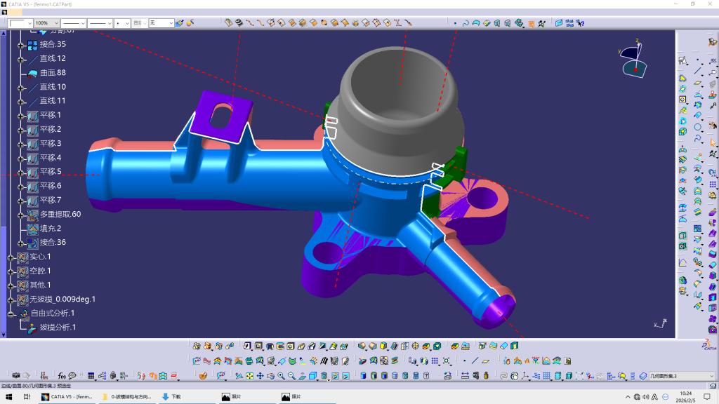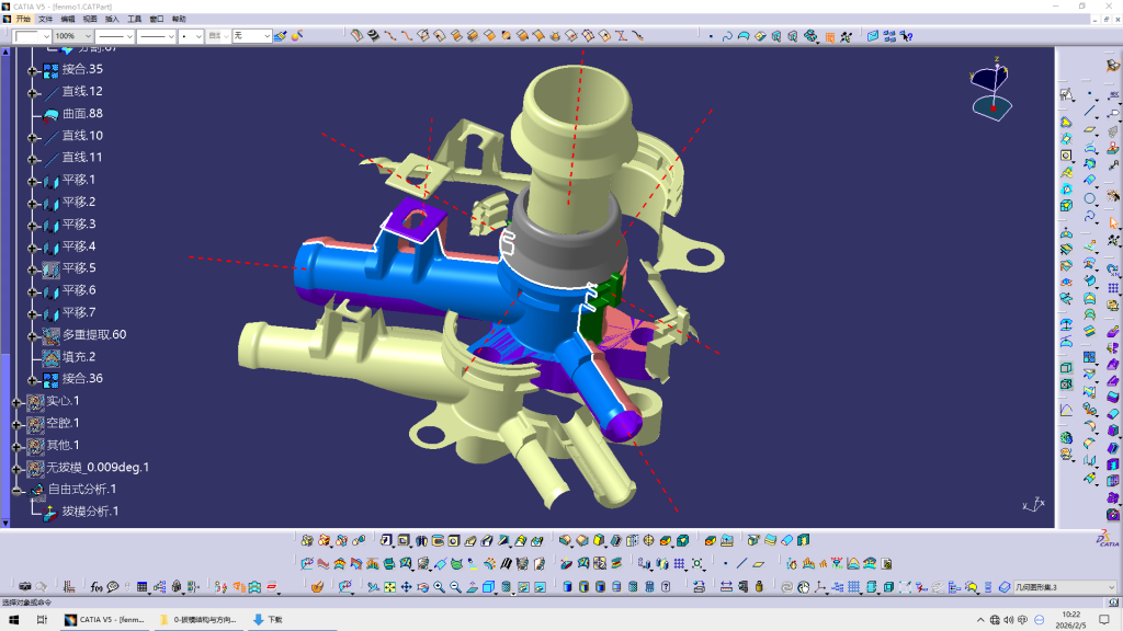 这个零件还是比较复杂的,需要考虑的问题比较多,是一次不错的分模案例,就当作是自己的练习了,今天算是没有偷懒了。
